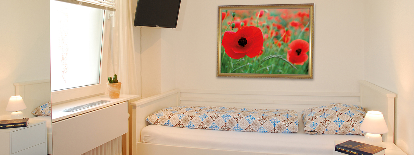 als Einzelzimmer 45,00 € pro Nacht, Zweibettzimmer pro Bett pro Nacht 30,00 €. Die gesamte Ferienwohnung kostet komplett 150,00 € pro Übernachtung.