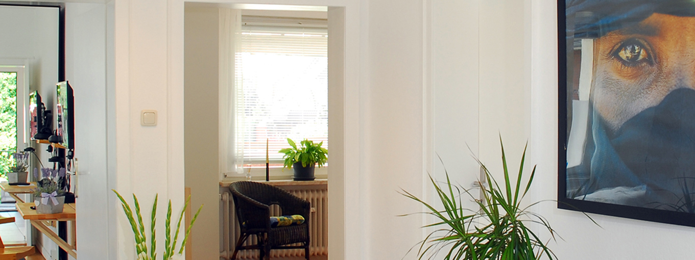 Unsere Ferienwohnung besteht aus einem Einzelzimmer, zwei Doppelzimmern, einer großzügigen, komplett eingerichteten